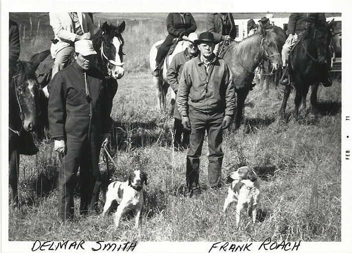 Bazooka’s Brandy—Tip Top’s Jean.—Both dogs were away in big, bold, searching casts, digging in deep along lake edge. Jean pointed with Brandy backing; however, Roach could not produce and both dogs were sent on. Both dogs pointed again, one hundred yards ahead, but still no birds. Then Jean went around the lake edge and pointed, Brandy backing in a nice pose; Roach flushed the birds and Jean dropped at shot. The dogs were sent on and Brandy pointed along lake edge some four hundred yards up from Jean’s find, with Jean backing. Evidently Brandy was on top of his birds, as he sat down. Smith flushed the birds close in. Both dogs were moved on. Brandy began to tire at 35 but picked up again. Brandy pointed and Smith flushed a half dozen birds; dog stood nicely to shot. Brandy began to tire again at fifty, with Jean well out in front at pick-up.