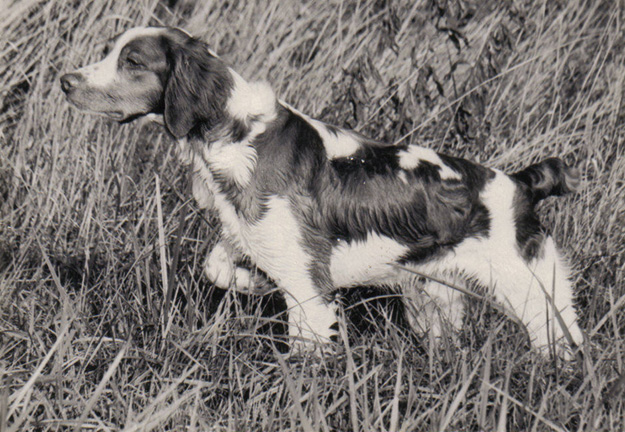 Goldtone’s Duke—Ringo De Britt.—At seventeen, in the bear trap, Duke was found standing and Ringo backing. Covey was perfectly located and both dogs stayed. The open country was absorbed by the two big running Britts for the next fifteen minutes. At 35, Ringo pointed and Smith flushed a single. Judge Brown had already seen some birds leave and dog was penalized. At 45, Ringo again pointed but went down when a meadowlark left the area. Duke, the 1968 National Champion and 1972 runner-up, and one of the all-time greats, evidently strained his back or leg and was limping for the last several minutes of the hour and was not able to finish as strong as was necessary to reap any rewards from this stake.