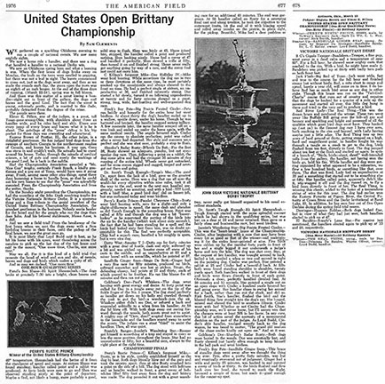 Sandhills Ginger Snap— Ringo De Britt.— Ginger had a very fine race for fifty minutes, produced no birds, softened somewhat and was lost at pickup. Ringo, the defending champ, had points at 27 and thirty, each of which proved to be fruitless. He ran like blazes for 45 minutes and then ran out of gas.
