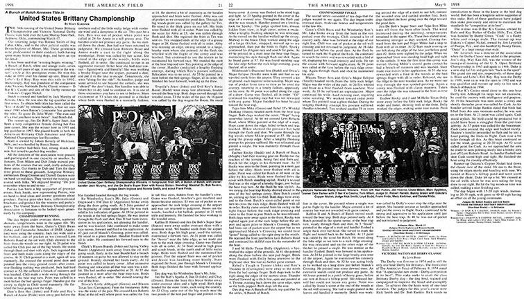 The 36th running of the United States Brittany Championship and Victoire Nationale Derby Classic were held over the Lake Murray State Park, Ardmore. Okla., commencing March 17.