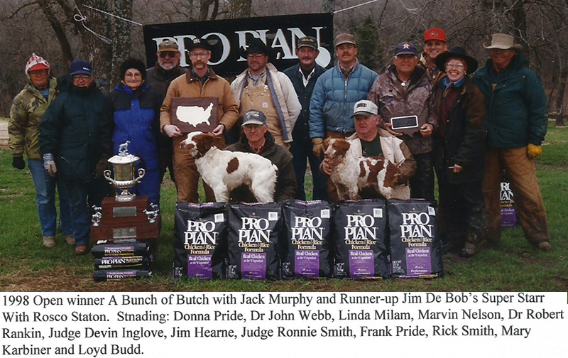 All the directors of the association were present and participated in one capacity or another. In January, Tom Milam and Dub Emde mowed portions of the courses that are used, really enhancing these areas. Our thanks to Dub and Tom for their time given to these grounds. Longtime Brittany enthusiasts Doug Croxton and Darrell Gaynor were on hand several days. They viewed the running and visited with folks. We enjoyed hearing “Do you remember when so and so ran . . .?”