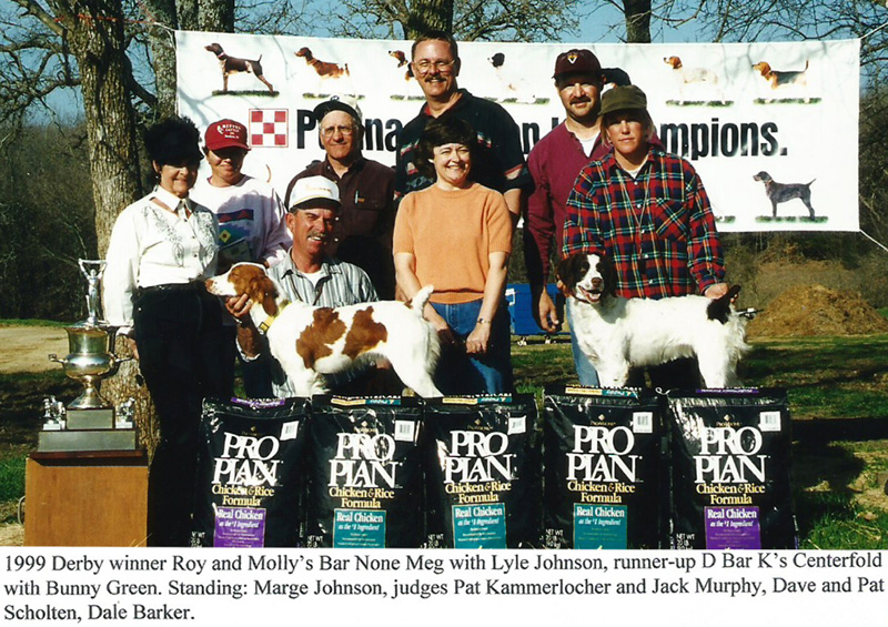 Judges Jack Murphy of Nowata, Okla., (as advertised) and this reporter (filling in for advertised Bob Rankin, who was taking care of family matters) used as criteria the day’s performance plus perceived potential as a mature all-age competitor. Roy and Molly’s Bar None Meg, owned by Dave and Pat Scholten of Broken Arrow, Okla., has been with trainer Lyle Johnson her entire short career, from the age of six months. She sports ten placements in puppy and Derby stakes. D Bar K’s Centerfold was acquired by Dale Barker of Cedar Hill, Tex., from her breeder/trainer, Bunny Green.