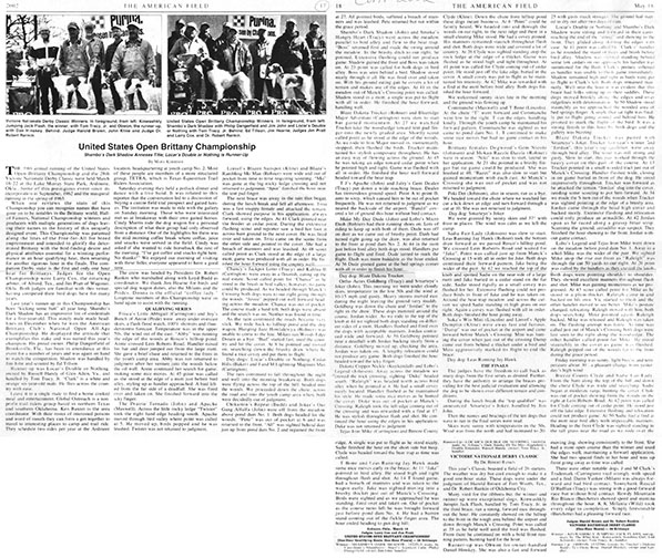 The 39th annual running of the United States Open Brittany Championship and the 28th Victoire Nationale Derby Classic were held March 16-22 at the Lake Murray State Park. Ardmore, Okla.. home of this prestigious event since its incorporation in September 1962 and the inaugural running in the spring of 1963.