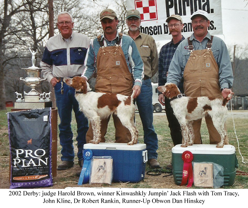 When one reviews the stats of this Championship you can recognize names that have gone on to be notables in the Brittany world, Hall-of-Famers, National Championship winners and producers with multiple generations of dogs leaving their names in the history of this uniquely designed event. This Championship was patterned along the lines of the Free-for-All for breed improvement and intended to glorify the determined Brittany with the bird-finding desire and physical attributes essential for a winning performance in an hour qualifying heat, then returning for another rigorous hour in the finals. The companion Derby stake is the first and only one hour heat for Brittanys. Judges for the Open Championship were Larry Cox, the returning arbiter, of Alvord. Tex., and Jim Pratt of Wagoner. Okla. Both judges are familiar with this venue, having competed their bird dogs here for many years.