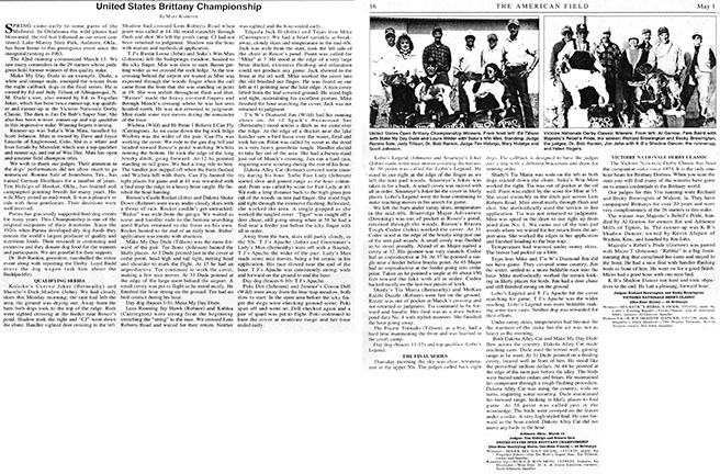 The Victoire Nationale Derby Classic has been the companion stake since 1974. It is the only onehour heats for Brittany Derbies. When you scan the stats you will find many of the winners have gone on to amass credentials in the Brittany world.