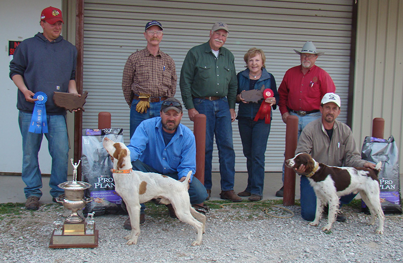 The judges for the open championship were Keith Hickam of Waco, Texas. Keith trains and handles professionally, has a keen eye for a running dog. Wes Felt of Kaufman, Texas was the replacement judge when the advertised judge could not officiate. Wes has been a longtime competitor in the Brittany world. We appreciate their attention to the standards for which this stake has come to be one of the premier events on the Brittany circuit.