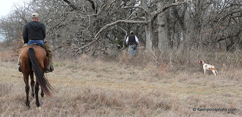 judge Charlie Collier watching handler Tom Tracy flushing for Fatz at the Bedsprings